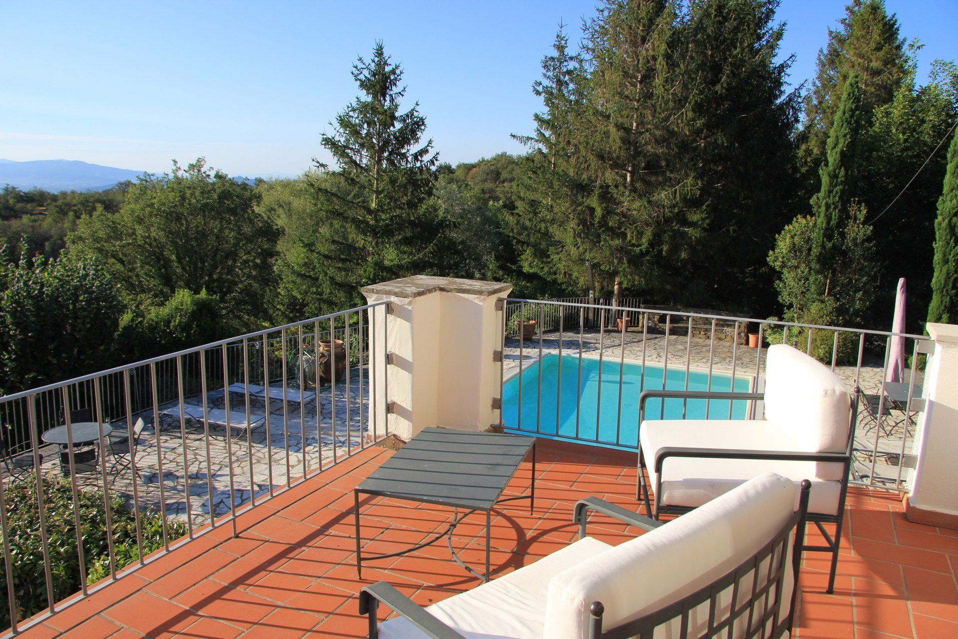 In de glooiende Toscaanse heuvels van de Pratomagno ligt deze prachtige, vrijstaande villa, te midden van de natuur, met een fantastisch uitzicht op Arezzo. Het huis bestaat uit twee woonlagen met elk een badkamer en twee slaapkamers en biedt plaats aan acht personen . Het is omgeven door een zeer ruime tuin met heel veel groen en een privézwembad voor de ultieme ontspanning. Er zijn verschillende terrassen om te genieten van het uitzicht, de rust, een heerlijke Italiaanse lunch of een goed glas wijn en van de omringende natuur.